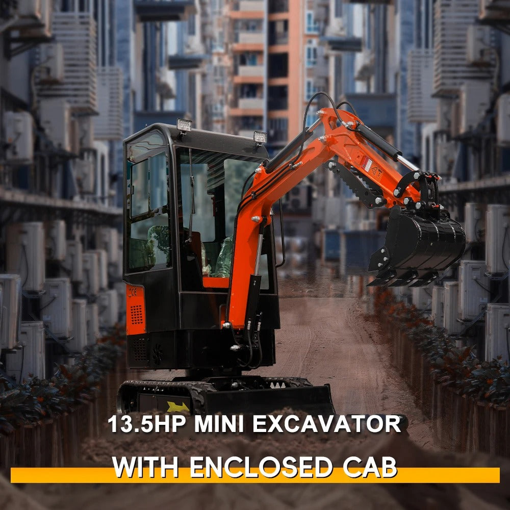 MMS Mini Excavator 1 Ton Crawler Digger With Closed Cab 13.5HP Gasoline Egnine Excavator